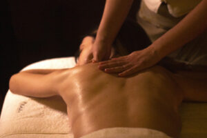 Effleurage – Utilizando a palma das mãos, pontas dos dedos e polegares, é feito um movimento deslizante longo que tem como objetivo interligar e massajar todo o corpo.